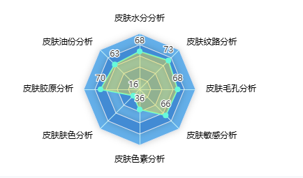 检测分析的项目有:皮肤水分分析、皮肤油份分析、皮肤胶原弹性分析、皮肤肤色分析、